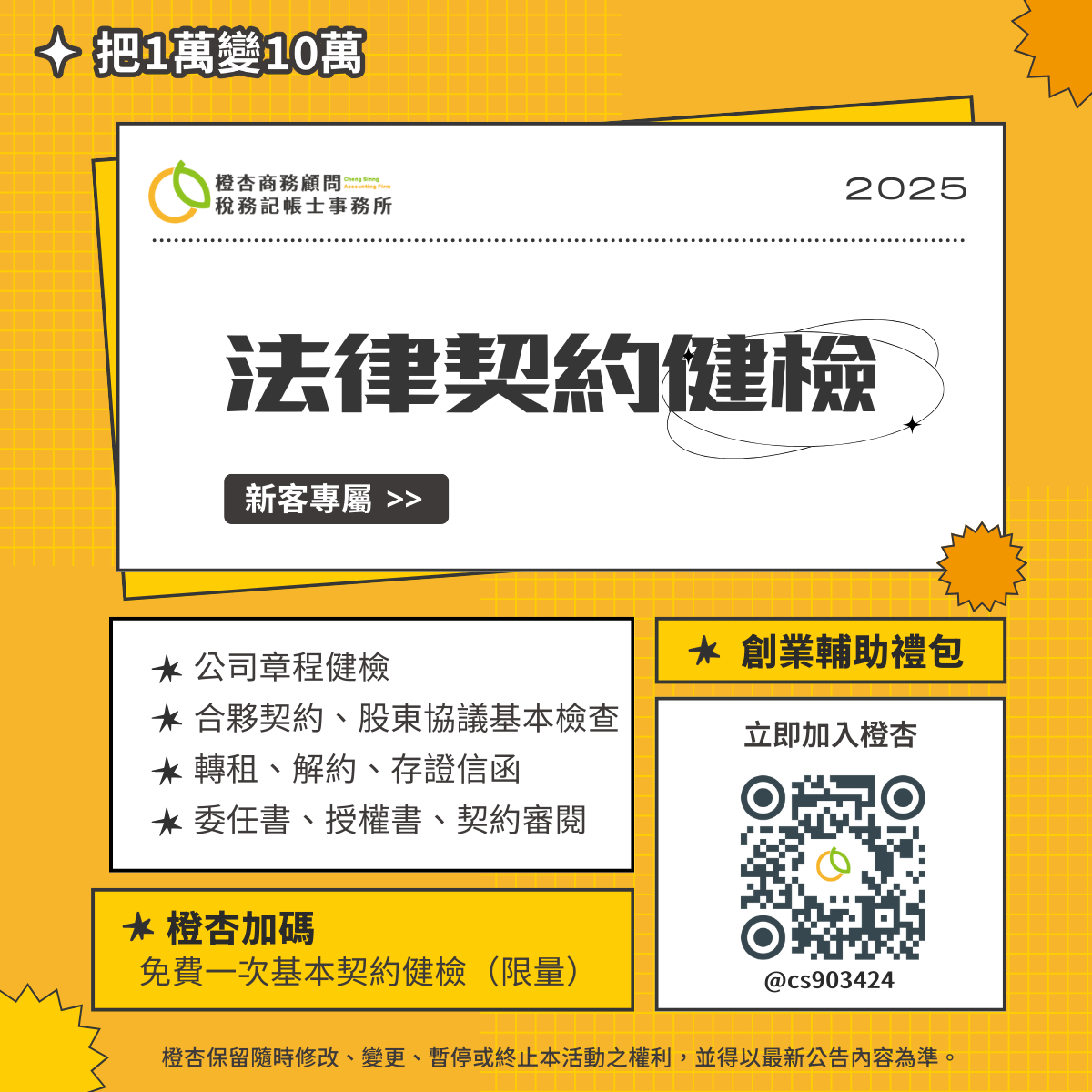 【普發一萬 X 橙杏】新客專屬|把1萬變10萬!六大增值禮包免費送!